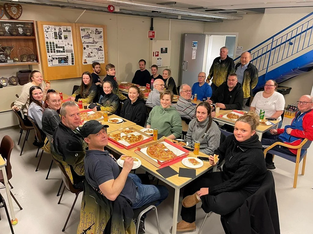 Det var mange flotte skytterprestasjoner, men også flott innsats av denne gjengen samt noen personer til. Oppryddingen etter stevnet var gjort unna på ca 30 minutter. Pizza på bordet etter at alt var unnagjort er populært og trivelig.