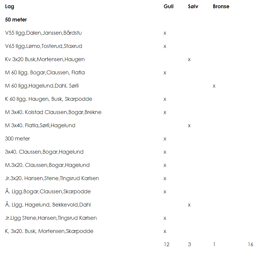 NM 50 og 300 meter på Elverum ble en stor suksess for våre skyttere. Det ble 13 individuelle gull samt 12 laggull.