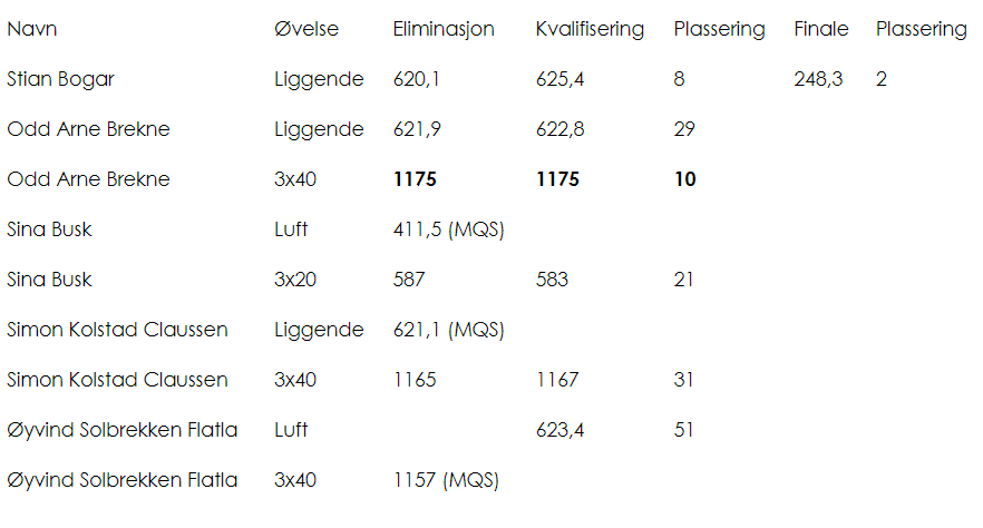 Resultatene for våre skyttere i München der det deltok skyttere fra 80 nasjoner: